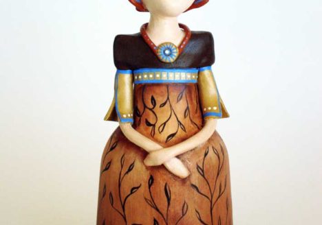 Phoebe is a nurturing spirit. She provides protection and safety for her growing family of feathered friends. Phoebe was created in stages, melding wet with dry pieces over several days. She stands at 170mm high.