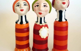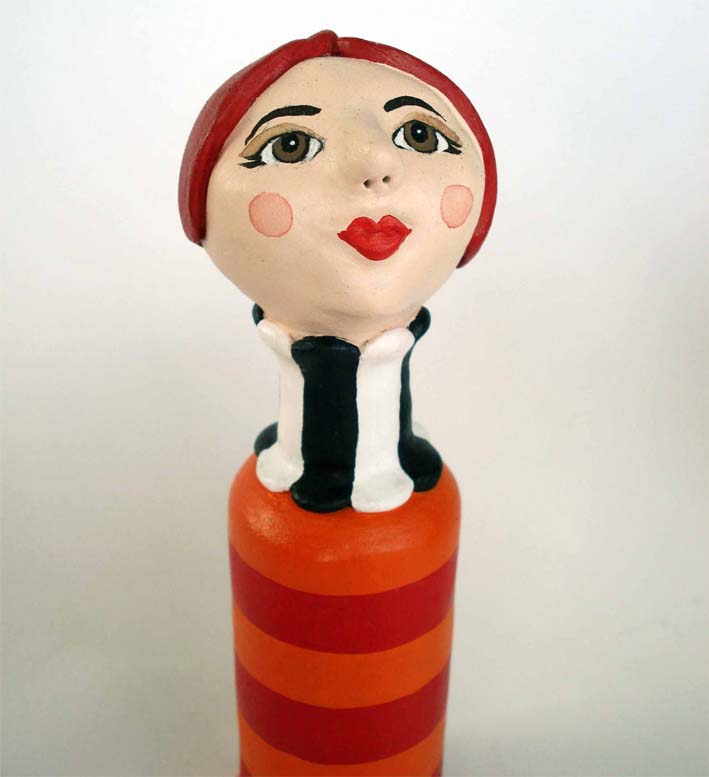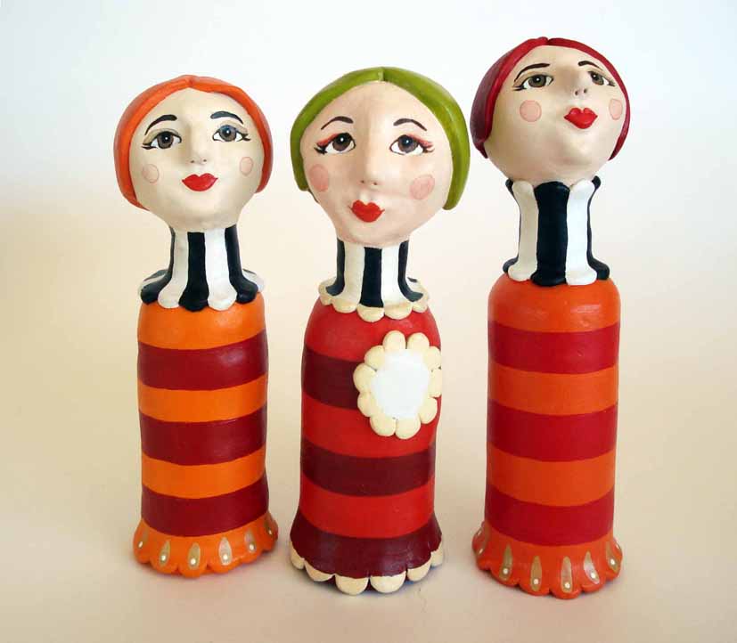 I love the Barcelona puppets but wanted to create stand alone figures that would sit unaided, as artpieces, on a surface. The Bronte sisters were the first three of the block. Emily, Anne and Charlotte are moulded around PVC plumbing couplings and stand about 11cm tall.