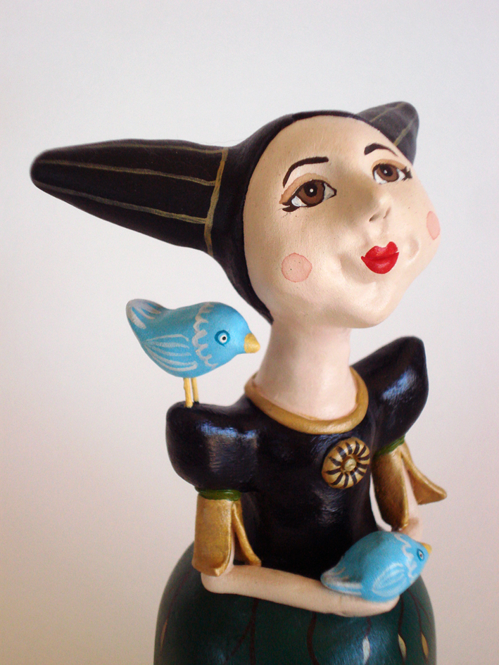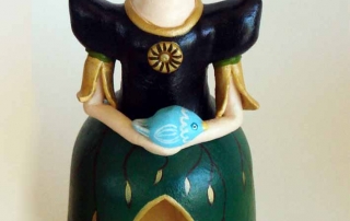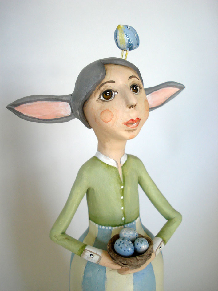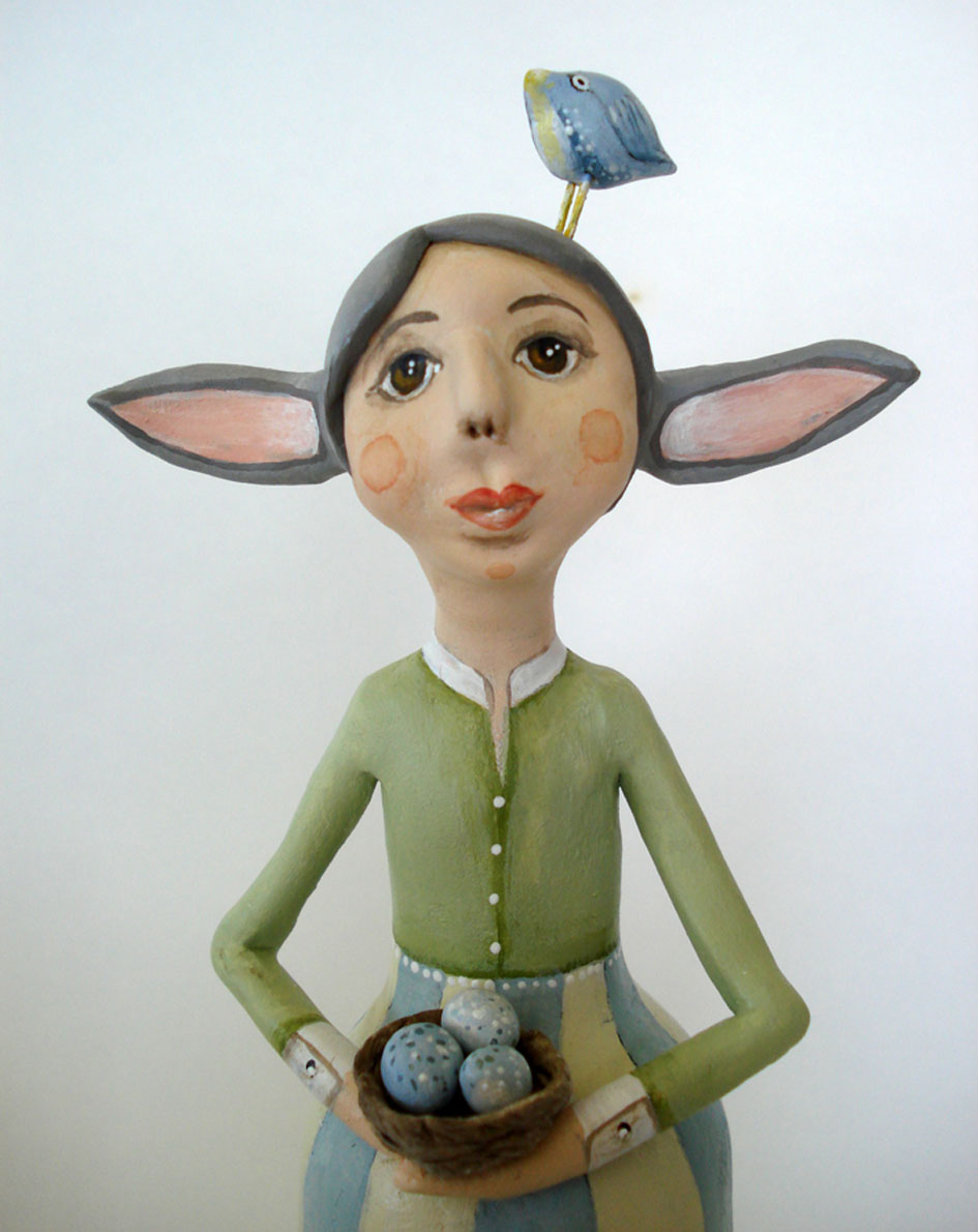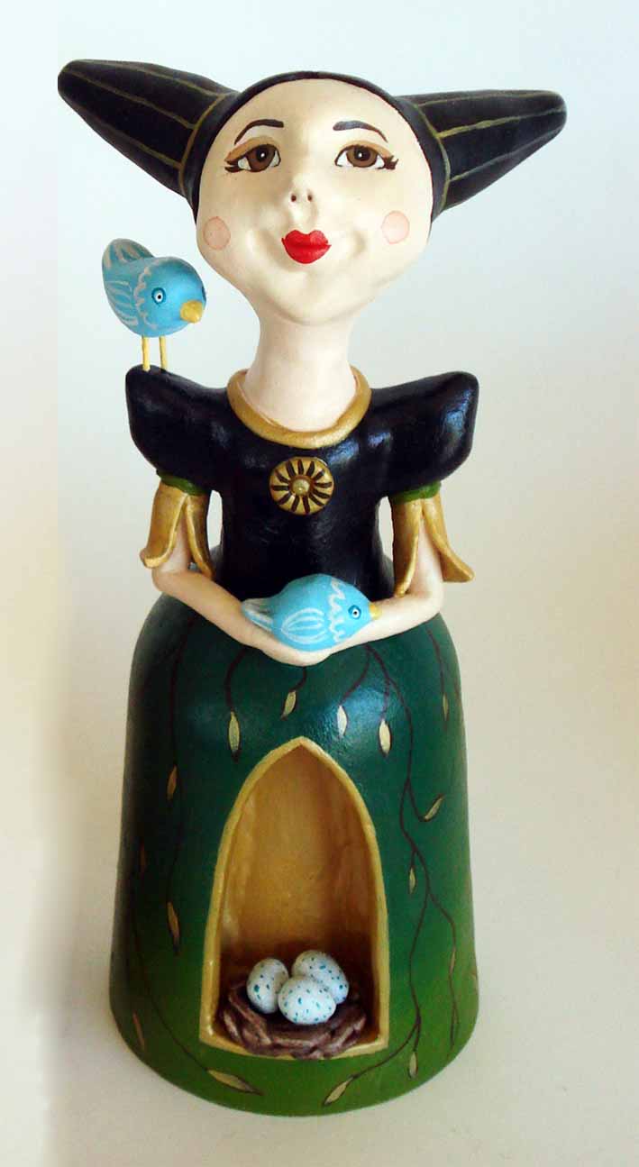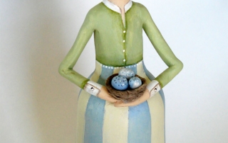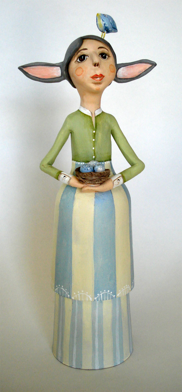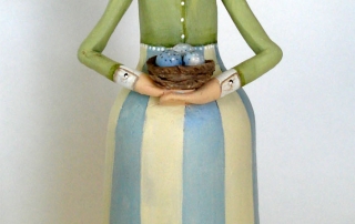Phoebe is a nurturing spirit. She provides protection and safety for her growing family of feathered friends. Phoebe was created in stages, melding wet with dry pieces over several days. She stands at 170mm high.
